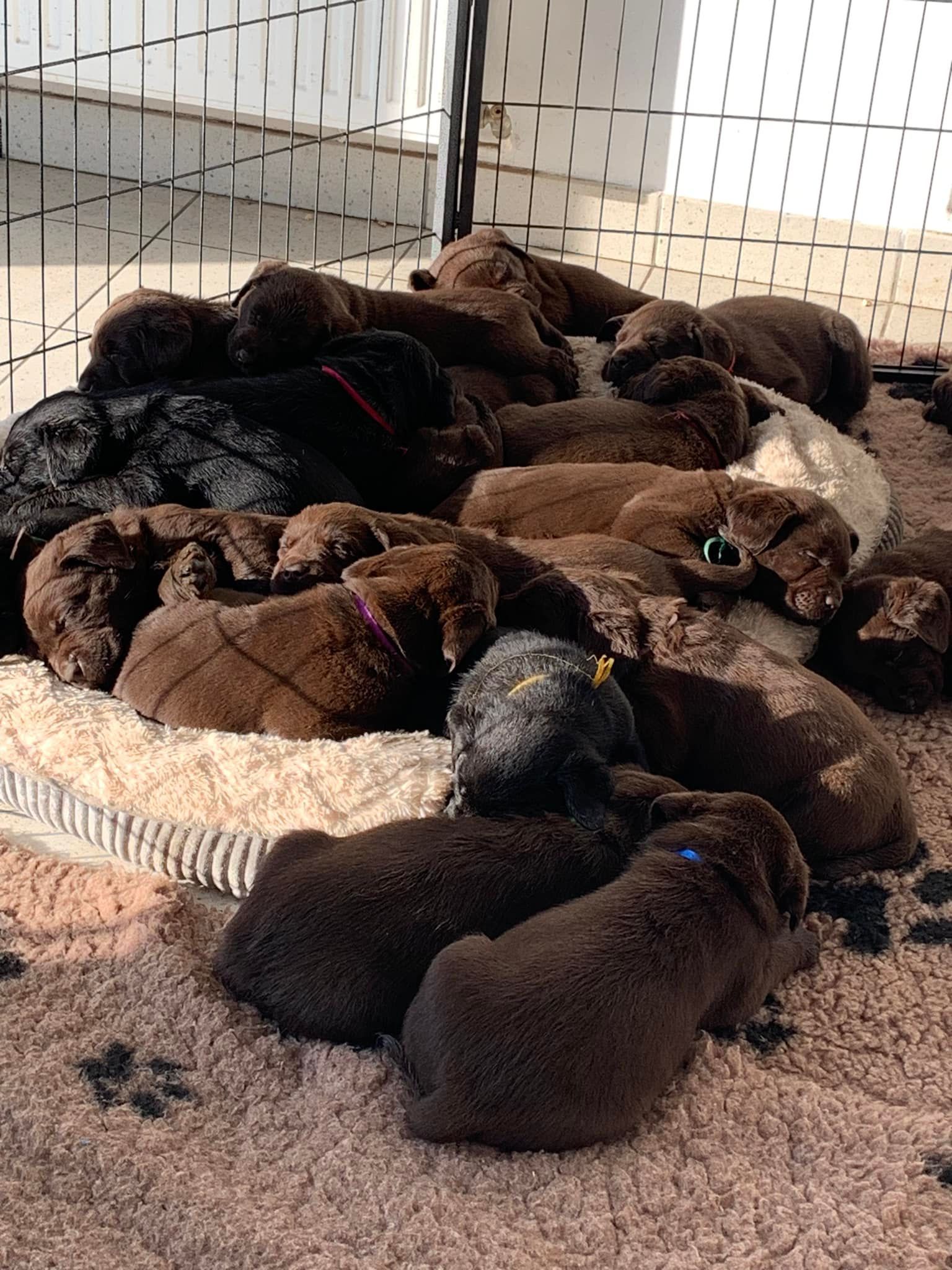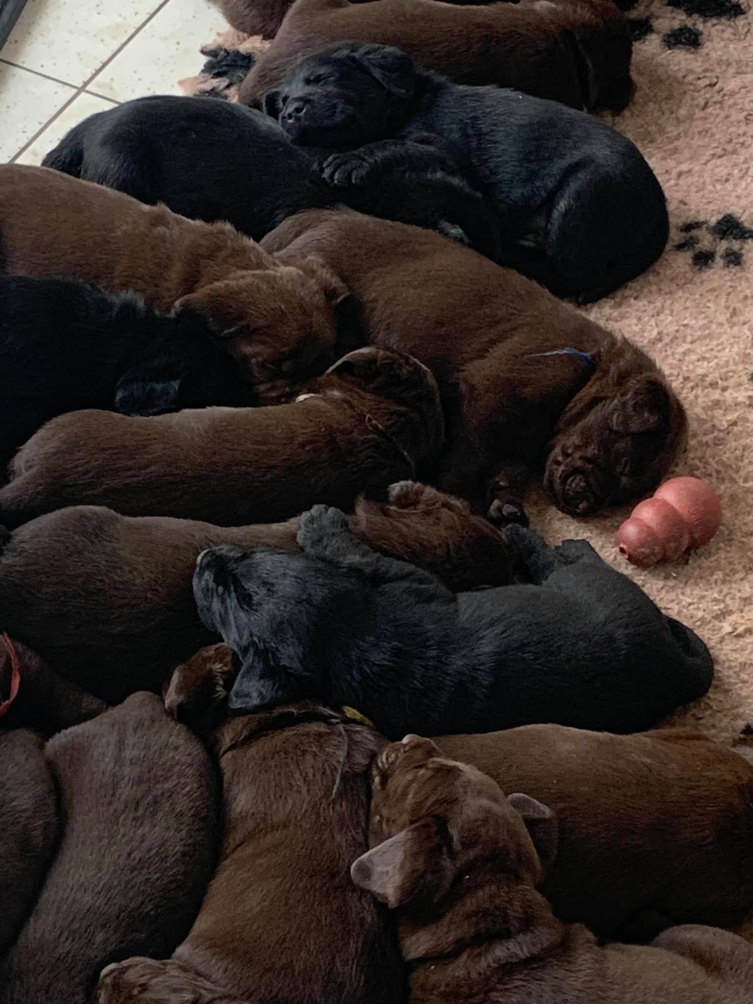 Chocolate puppies: 3 females - 3 malesBlack puppy: 3 females - 1 maleAll the puppies have found their family