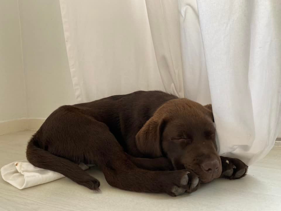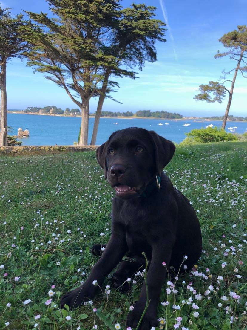 Turner vit en Corse - c'est notre premier chiot à prendre le train jusqu'à Paris puis l'avion avec Air Corsica dès ses 8 semaines pour rejoindre l'île de Beauté !