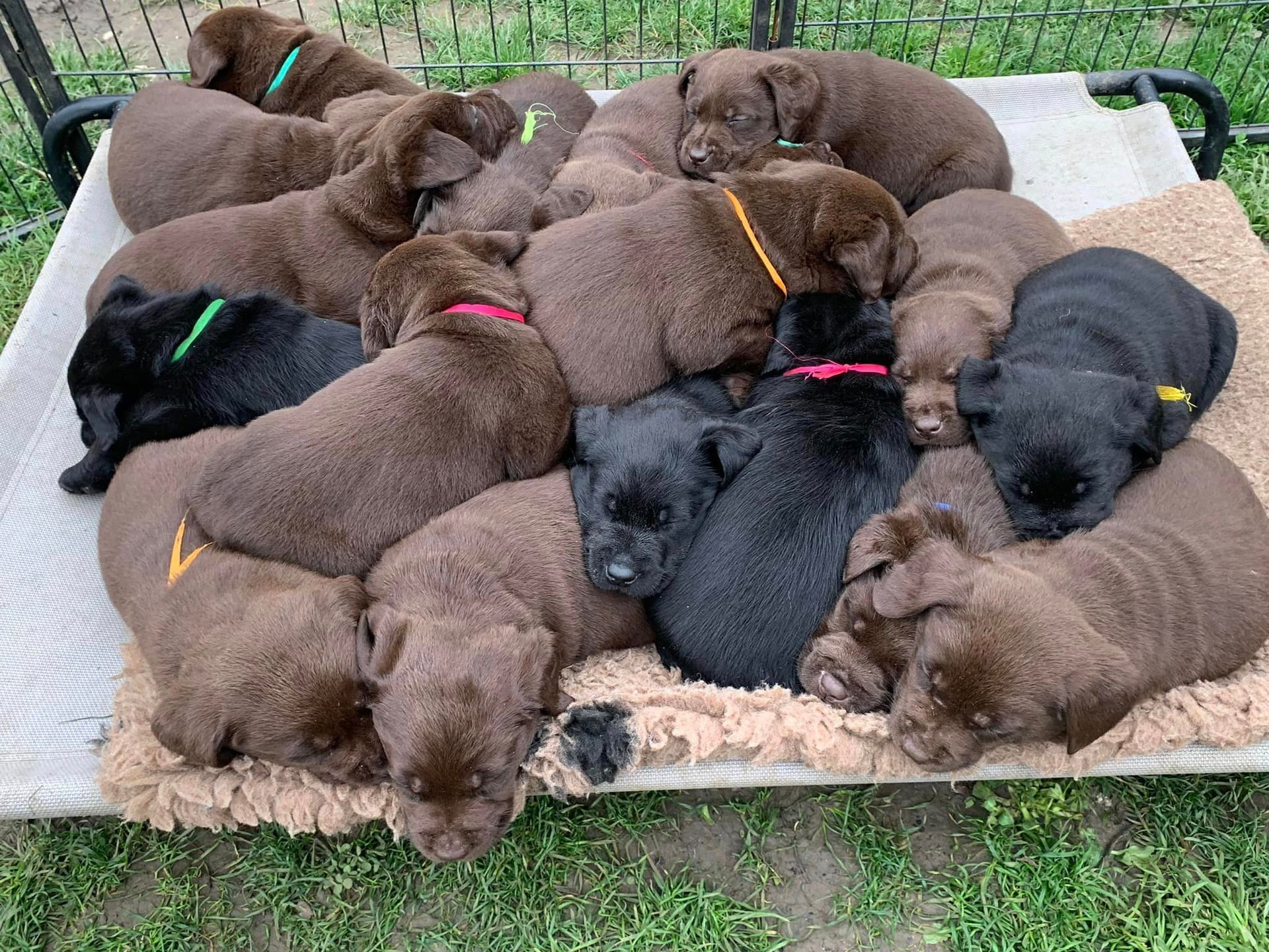 Chiots chocolat : 3 femelles - 3 mâlesChiot noir : 3 femelles - 1 mâleTous les chiots ont trouvé leur famille