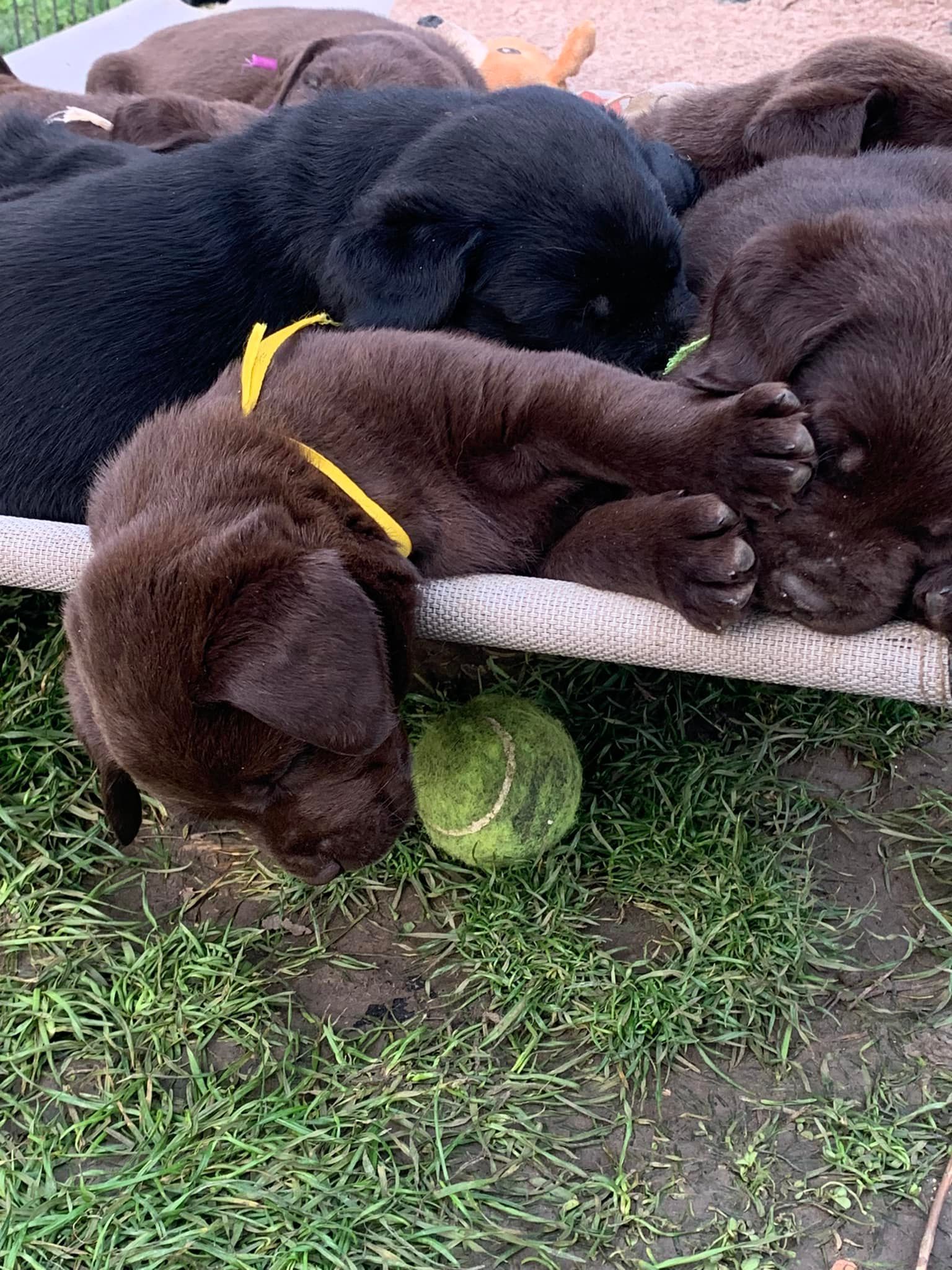Chocolate puppies: 3 females - 3 malesBlack puppy: 3 females - 1 maleAll the puppies have found their family